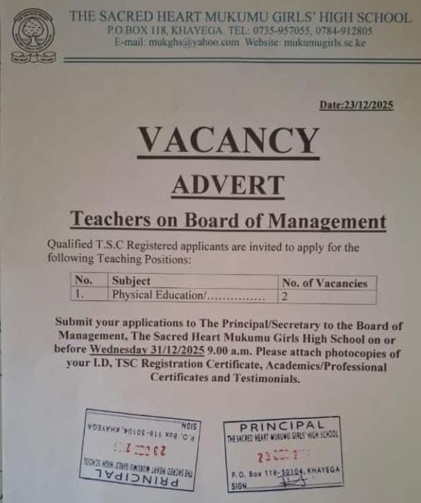 2026 BOM TEACHING VACANCY AT MUKUMU GIRLS’ HIGH SCHOOL