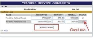 (a) Log into Members area to approve your loan. https://payslip.tsc.go.ke/membermenut.php